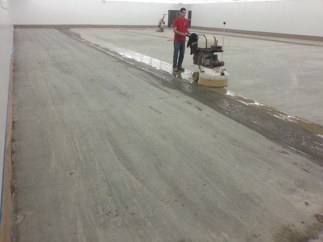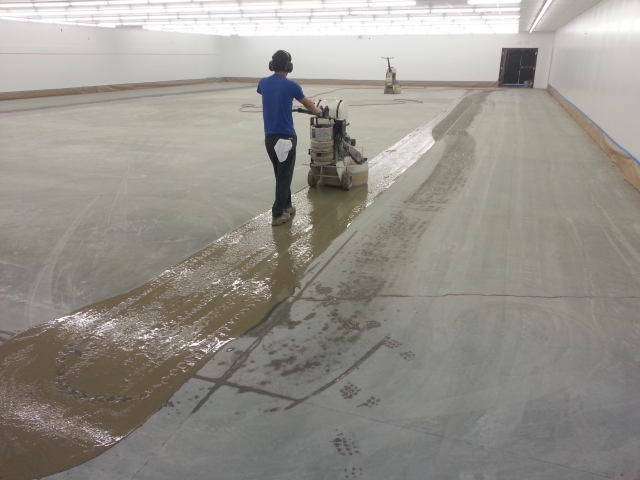 Initial cut or "grind" of concrete floor.